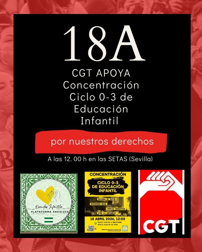 Desde CGT Enseñanza respaldamos con firmeza la movilización convocada por la Plataforma Andaluza 0-3. La defensa de la educación pública de calidad empieza en la base, y no daremos un paso atrás.