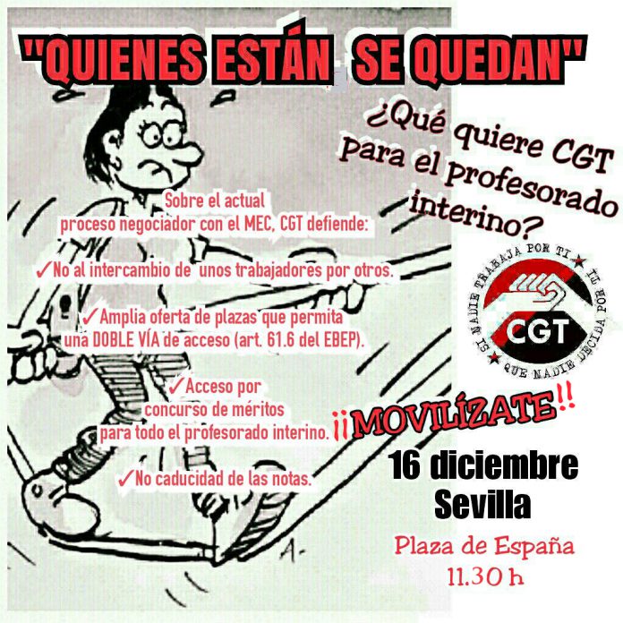 En ese mismo año, CGT denuncia que los Sindicatos de la mesa sectorial abandonan a su suerte al profesorado interino andaluz.